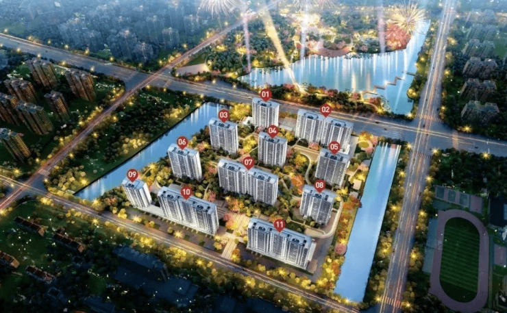 在城市中轴结合“稀缺低密”与“瞰景小高层”,将容积率控制在2.2,舒适人居标杆。
