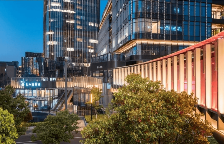 整体规划概况:项目是总建筑面积超 120 万㎡的超级综合体,涵盖约 20 万方甲级写字楼集群、K11 购物艺术中心、瑰丽酒店、中央艺术公园及臻稀住宅宁铸尊府等业态。其中约 249 米高的 “宁波塔” 为三江口第一高楼,与宁铸中心 1 - 2 号楼构成核心商务集群。建筑由 Benoy 等国际大师团队设计,采用 LOW - E 中空玻璃幕墙、铝板干挂工艺,还通过空中连廊、地下环路实现各业态高效联动,搭配约 2 万方中央艺术公园,绿化率达 35%,营造出 “公园式办公” 场景。