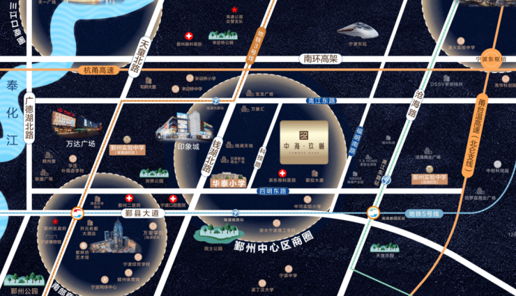 位于宁波城市版图轴心地位的中海玖樾,地处三江口、东部新城、南部商务区三大商圈的中心位置,链接了整座城市的核芯资源。