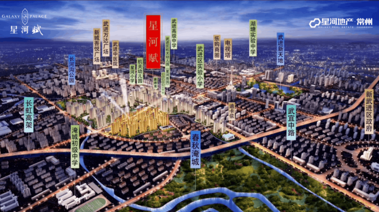 先是总建约220万方的武进第一大盘——星河国际,集高层住宅、别墅、商场、办公、学校于一体,星河盖的不是楼,到像是一座拔地而起的城。