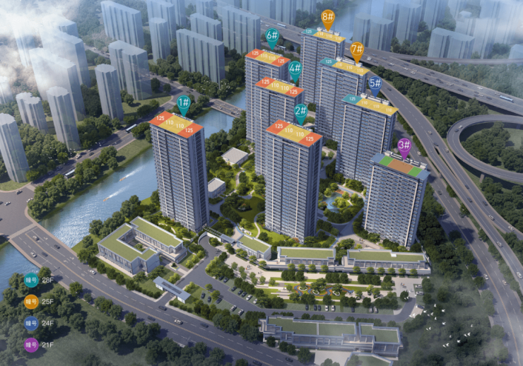 荣安新月河滨,占地面积:约42889㎡,总建筑面积:约144164.66㎡。分为8幢住宅楼和6幢商业楼,其中住宅可售部分面积段是110/125,自持租赁部分是47/62/68。总计870户。