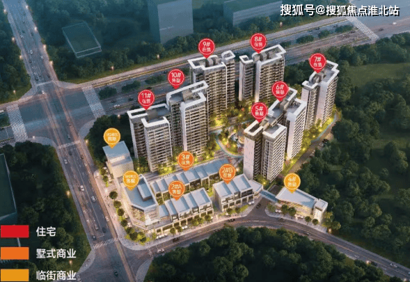 项目构成:建有 7 栋住宅楼和 6 栋 2 至 5 层的商业楼。