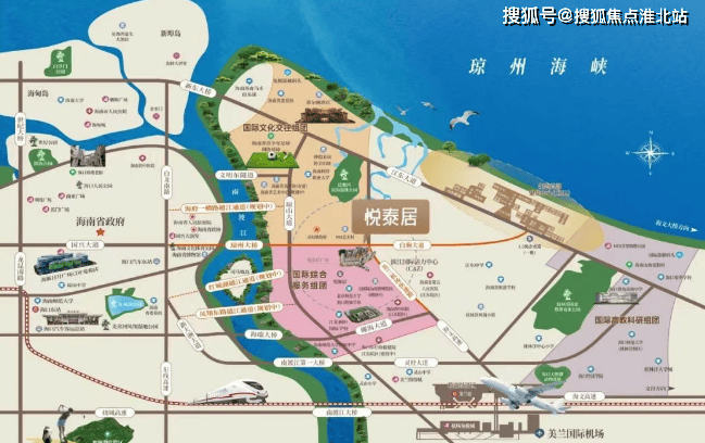 配套设施:周边有迈雅河湿地公园、芙蓉河湿地公园、道孟河湿地公园 3 大城市公园,海南省中医院江东院区、海口市妇幼保健院江东院区等三甲医院,以及北师大海口附属学校、江东枫叶国际学校等学校。项目还规划了约 8500㎡社区商业体,满足业主日常需求。