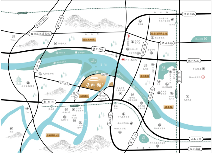 • 环境:北依漓渚江、南临雄鹅江、鉴湖风景名胜区(规划)、陆游故里、快阁&画桥公园、鉴湖诗廊、两大规划公园
