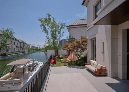 游艇入户:上海首个实现“游艇到户”的项目,业主可直接从花园停靠私人游艇,兼具高端出行与社交功能。
