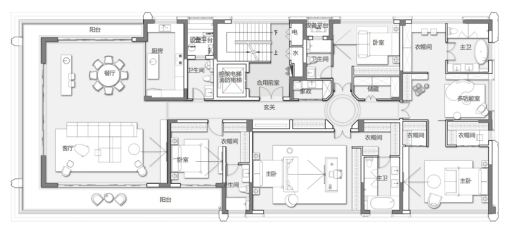 超奢华主卧配备了双衣帽间+书房+梳妆间+独立卫浴,女主人在阔绰豪气、功能完善的衣帽间外,竟还能拥有专属的梳妆空间,想想也让人艳羡。甚至连男主人也可以拥有属于自己的衣帽间,这种配置,秒杀大多数的平层产品。