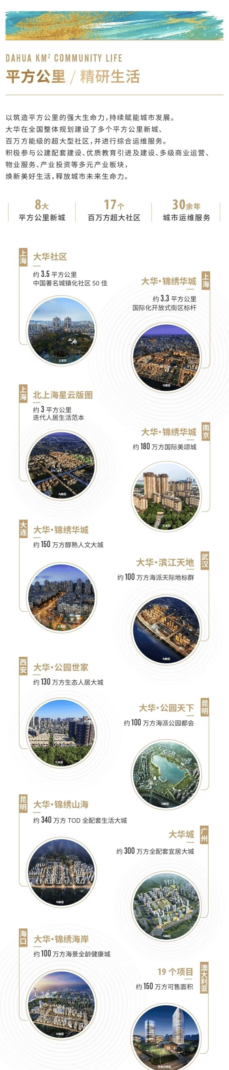 大华城市更新的步伐已遍及中国长三角、环渤海、中西部、西南、粤港澳及华南区域五大区。以平方公里的恢弘版图,焕新美好生活。