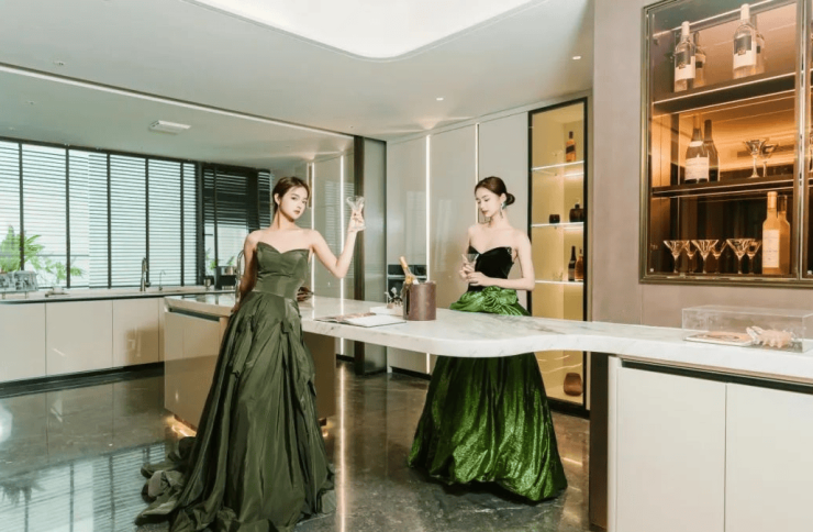 在厨房的设计中,约256㎡奢居更加注重厨房空间的奢阔度与高效利用,中西双厨的设计,超20㎡的大尺度空间,尽情施展厨艺,充分满足全家人的味蕾。