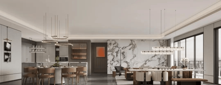云峯ONE在约256㎡奢居的设计中,不断探索如何平衡社交与居住的关系,为居者营造良好的家庭互动氛围。