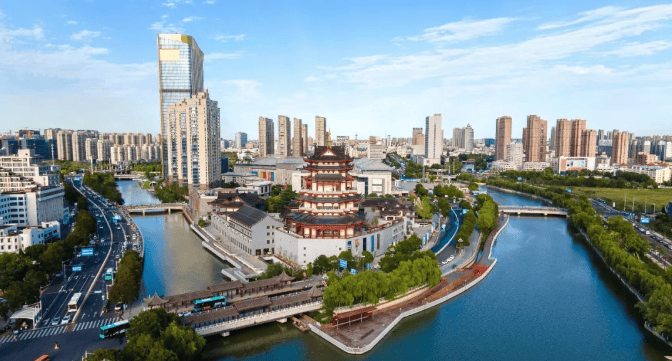 社区:现代 Super Flat 立面,“印月五境 / 晓风九景” 园林,配户外泳池、阳光草坪、全龄架空层(城市会客厅、儿童区、书房);串场河 + 人民公园双景观视野。
