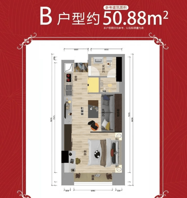 户型面积:以 50-64㎡为主,其中 50㎡-57㎡为主力户型,层高 3.3 米,空间利用率高,采光充足,户型方正实用,设计百变,64㎡的面积还可打造出两房的格局。