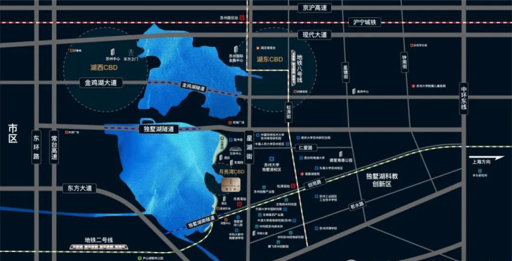 毗邻独墅湖隧道、独墅湖南隧道、中环南线