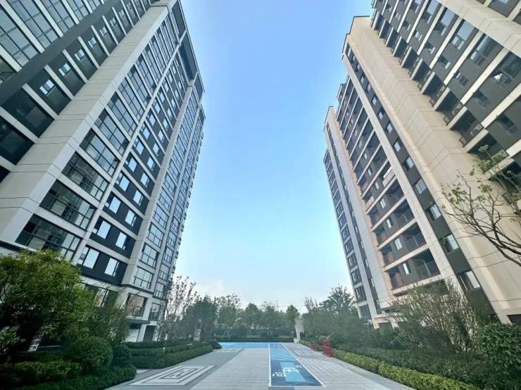 建筑特色:现代简约风格,真石漆 + 玻璃幕墙外立面;窗墙比 41%–45%,南向三玻两腔 Low‑E 玻璃 + 内置百叶,隔音隔热强;融入海绵城市理念的社区景观