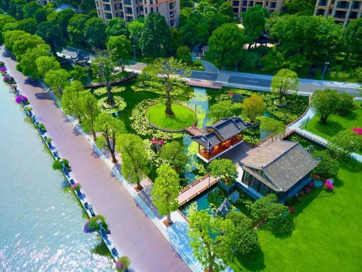 园林景观:承袭香山帮造园技法,将国粹榫卯工艺融入其中,筑以六角凉亭和茶轩,打造中式经典园林。项目以一套星河湾 4.0 标准 “星中式” 园林宅邸,打造人工湖、宅间水系等,可享受三面水系环绕,使活水串联起生活动线和景观片段。
