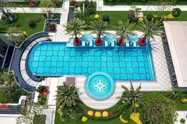 楼栋间更对标希腊安缦酒店打造度假风十足的泳池。