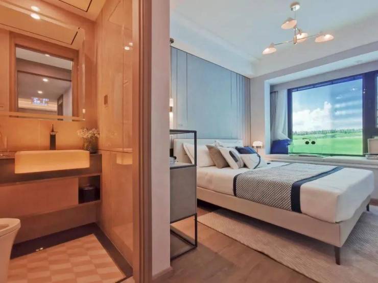 这个户型相信年轻人更喜欢,毕竟,哪个年轻人会拒绝270度采光的客厅呢!这套户型同样拥有约80%的高得房率、灵活机动空间等优点,而且布局上隐私性更强、窗墙比更高!主卧和次卧是完全隔断的,从归家动线上来看,主次卧的轨交动线几乎不重叠。这种设计很适合两代同住的家庭,因为很多年轻人因为下班晚,是不希望打扰到长辈的。南向窗墙比达到约41%-45%,空间通透感十足!租住过上海老公房的朋友很多都对高窗墙比有一定执念,这个户型相信打动了不少人的心!102m²的户型也很难让人不爱:
