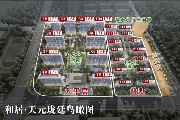 物业类型:包括 10 栋 16-17 层的小高层和 14 栋 6 层的叠墅。