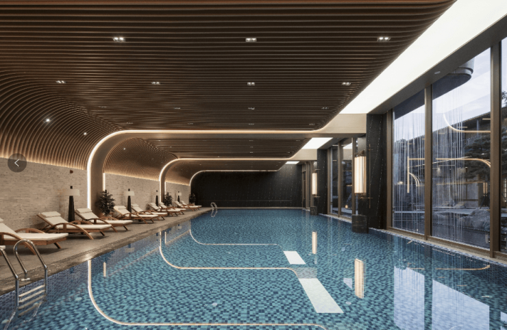 以画境入景,以美学凝韵,汲取南宋书画的山水意境,造境水印叠池、沉浸式花园,构筑当代立体山水场域。藏匿于山林间的下沉庭院,融合恒温泳池、高端健身房等功能空间,在繁华中感知宁静,以雅奢生活方式高定塔尖生活。