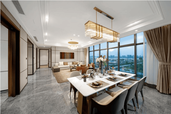 面积:约226-328㎡,采用全套房设计,层高3.6米,配备IMAX级宽幅横厅和全景落地窗,可俯瞰钱塘江景。