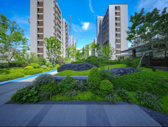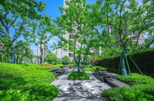 森系园林景观:以新加坡度假森居为灵感,打造“一轴一环六境”园林体系,包含约260米中庭运动环、阳光草坪、花园躺岛、植物学堂、咖啡馆等全龄化场景,满足居民休闲、运动、社交需求。