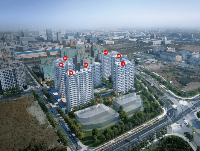 交通:周边直线 1km 内有 7 个公交站,紧邻嘉兴环城长水路高架,未来还将规划 T4、T7 无轨电车双线贯穿城南板块。