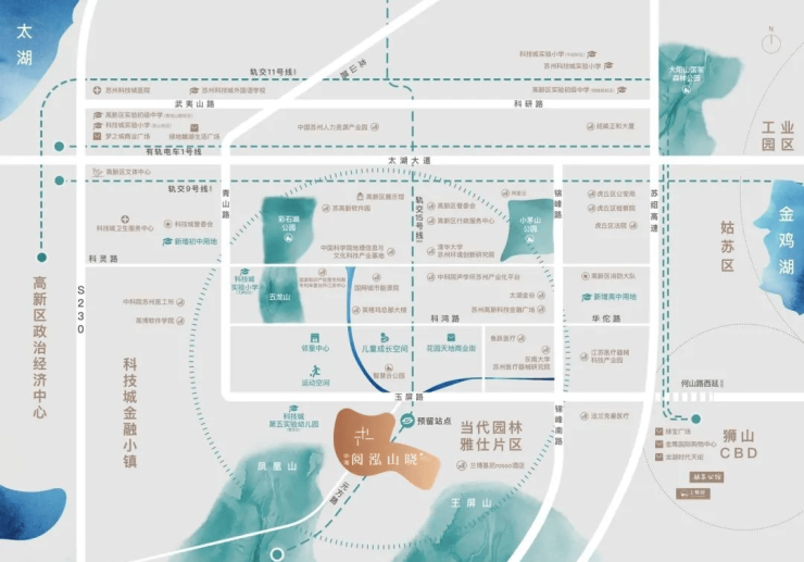 苏州处于产业转型期,从制造业往高端制造、科技创新智慧产业、金融方向转型升级,而科技城就是苏州科技创新的发展级核,金融小镇是科技城科技创新的桥头堡。我们项目就是位于科技城南,金融小镇最核心的生态居住区域。