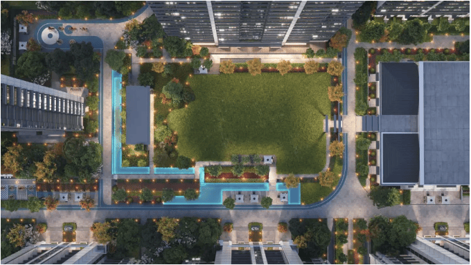 景观布局:采用围合式设计,7 栋高层住宅环绕中央花园,中庭超大花园景观为亮点;以 “H-life” 场景灵感为依托,打造七大主题景观区,包括酒店大堂式入户景观、阳光大草坪、全龄檐下活动空间、廊架空间等。