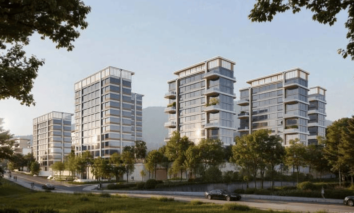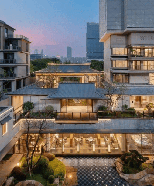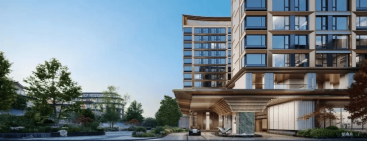 建筑设计:小区主入口有长约 50 米、高约 10 米的大气门楼,融入庑殿金顶、建筑斗拱等中式元素。同时地块整体抬高 5.1 米,既让低楼层也能拥有较好的视野和采光,还将配电房等设施藏于地下,保证了地上空间的纯粹性。