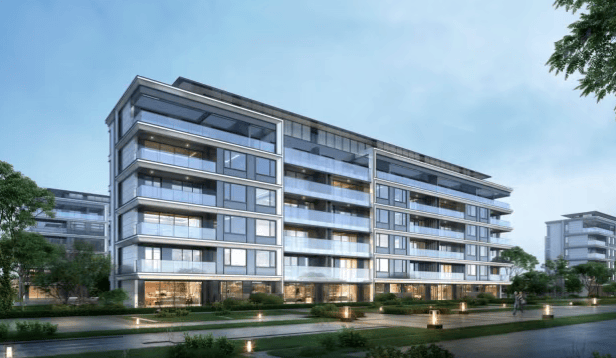 项目规划:项目分为 A、B 两个地块开发,其中 A 区为 8 栋叠墅(高 4-6 层),B 区为 14 栋小高层(高 11-17 层)。