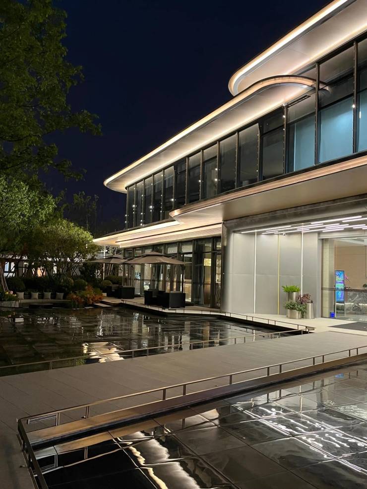 建筑风格:苏式高级灰立面,银灰色铝板 + 大面积玻璃 + 东方飘檐设计;组团式布局,社区内配四点半学堂、幼托中心、600㎡体育场地等全龄配套