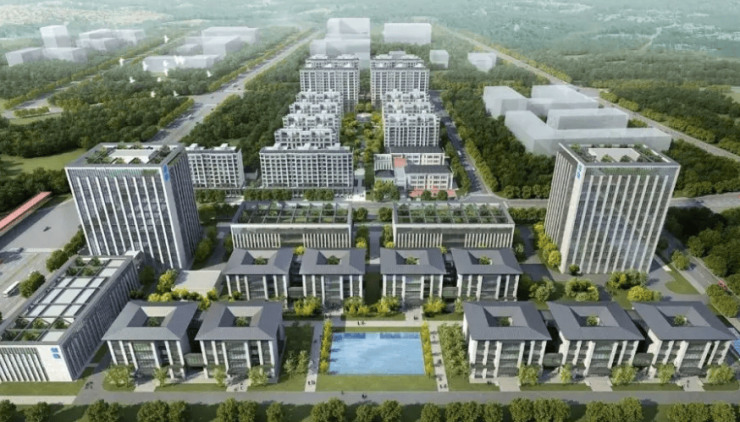 规模指标:占地约48544㎡(72.69 亩),总建面约11.24 万㎡;容积率 1.6、绿化率 35%;共 9 栋楼(4–5 层花园独栋 + 高层办公);现房(2023 年 8 月交付),毛坯 / 公共部分精装。