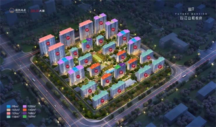 小高层户型:主力户型有 3 室 2 厅 2 卫的 112㎡户型、4 室 2 厅 2 卫的 120㎡户型以及 4 室 2 厅 2 卫的 127㎡户型等,户型设计注重空间的序列感,开放性与私密性结合,南北通透,动线合理,动静区隔,污洁分离,明室设计,保证居室的私密性,厨房卫生间通风采光良好。