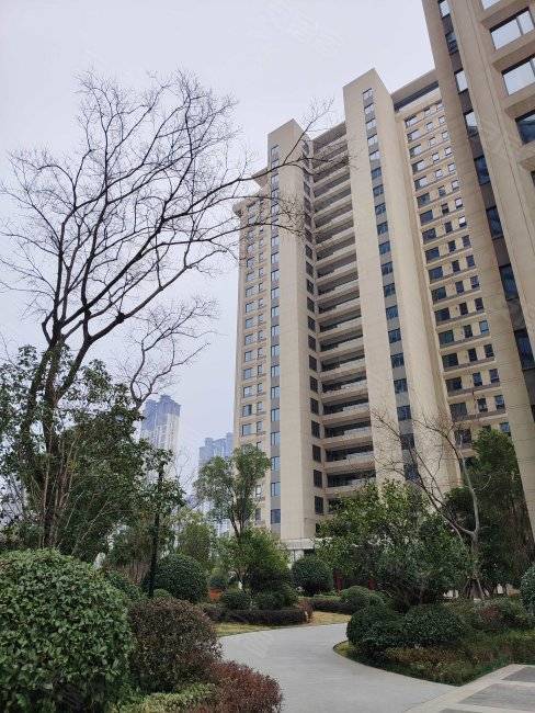 小区规划:小区分两期开发,由 8 座单体建筑构成,其中 4 栋为办公、4 栋为住宅,建筑天际线南低北高,围合出中心景观花园。绿化景观系统由中心大花园、景观中轴及庭院绿化构成,还设有入户花园,形成建筑与自然互相渗透的城市公园。小区内配备了基本的健身设施、休闲步道等,满足居民日常休闲锻炼的需求。