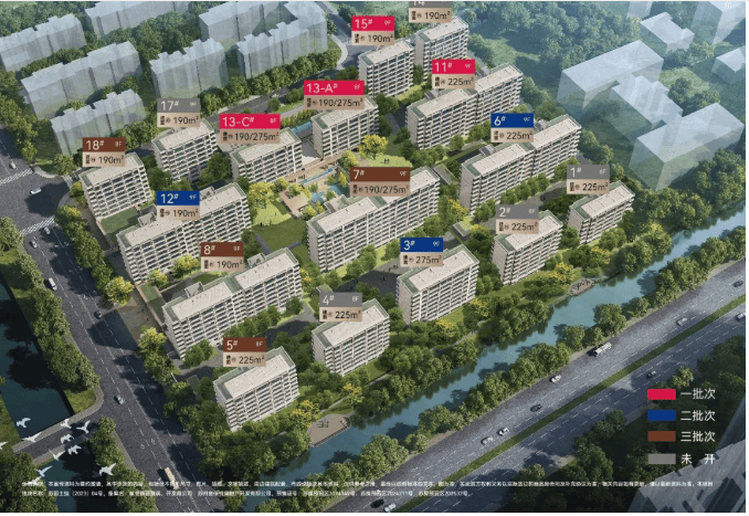 产品类型:6-9层纯洋房,容积率1.5,共约340套房源,面积段为190-275㎡。