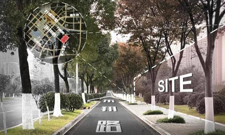 基地南侧是一条缀满榉树和香樟的林荫路。暮夏,穿梭其中,轻风微拂树梢,恬静与舒适的生活气息扑面而来。