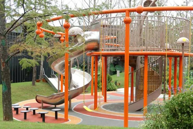 小径与植物相互穿插,随着两侧的地形的缓缓起伏变化,营造富有野趣的林间乐园。郁郁葱葱的绿植,蜿蜒曲折的道路,未知的体验激发着孩童对自然的探索。