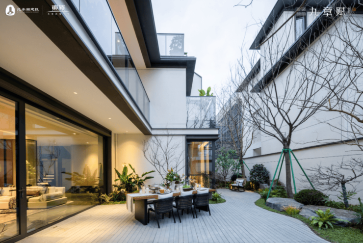 在设计上,九章赋充分汲取传统的府院文化,上下形成“一座大宅,六个院子”,让园林景观深藏一方合院。 同时项目每一套房子均为独门独院独户,2.6米实体院墙缔造归家礼序,L型的建筑布局兼具实用、私密、趣味,打造江南雅致宜居之所。