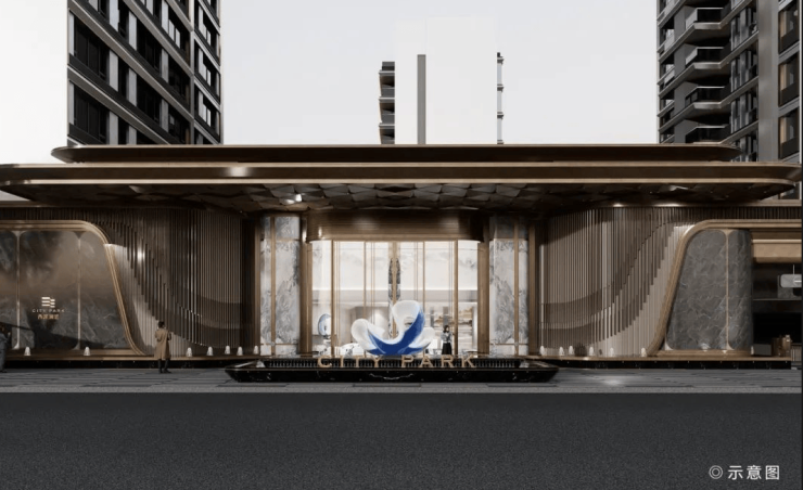 建筑风格:采用现代简约风格,建筑立面选用浅色系铝板与蓝灰玻璃,搭配香槟金铝板线条,与瓯江自然风光相互映衬,打造出层次丰富的城市景观。