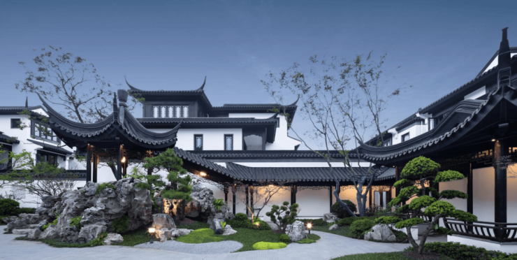 本项目距市中心距离与桃李春风类似,构筑“田、园、院、居”四重空间,打造「田+宅的梦想居住模式,创新产品 140 平中式合院别墅,超高得房率.在杭州主城范围内可谓绝无仅有,也是“杭州最低门槛最具性价比的蓝城中式合院”。