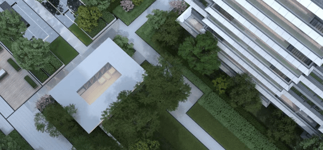 内部配套:地下室设置大幅采光天窗,室内借鉴传统造园手法,利用通高和楼梯形成竖向 “游弋”,通过抬高、矮墙、虚隔、造景、汀步、对望等元素,打造充满中式气韵的空间场景。