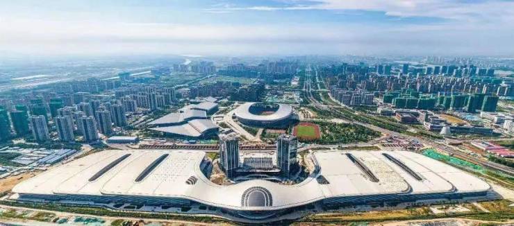 而淮海国际博览中心,更为重磅。该项目一期2019年动工,2021年竣工成功开展。