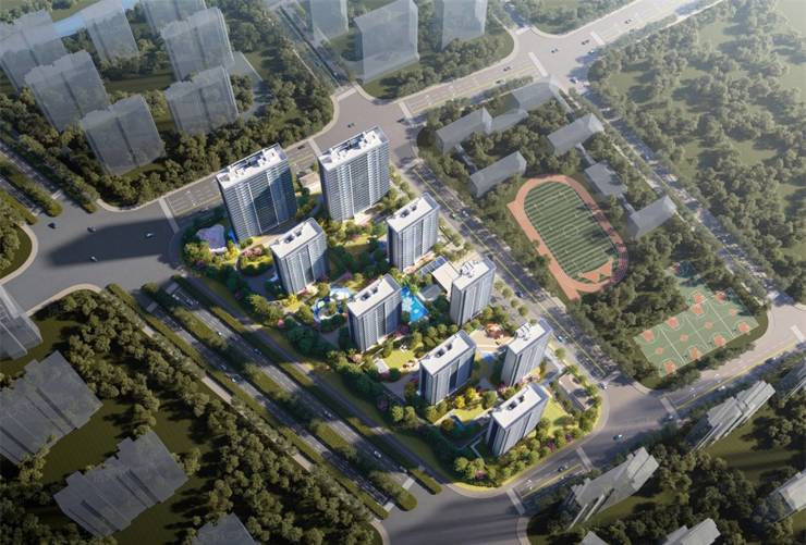 建筑风格:外立面采用保温装饰一体板、铝板、三玻两腔 LOW-E 玻璃等优质材料,超大窗墙比设计,提升了采光和通风效果,整体外观时尚大气。