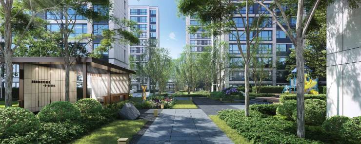 新亚洲建筑风格采用真石漆外立面搭配大面积玻璃窗,线条简洁明快,洋房与别墅分区布局,形成高低错落的天际线。别墅采用独门独院设计,部分户型配备下沉式庭院与露台,拓展空间利用率。