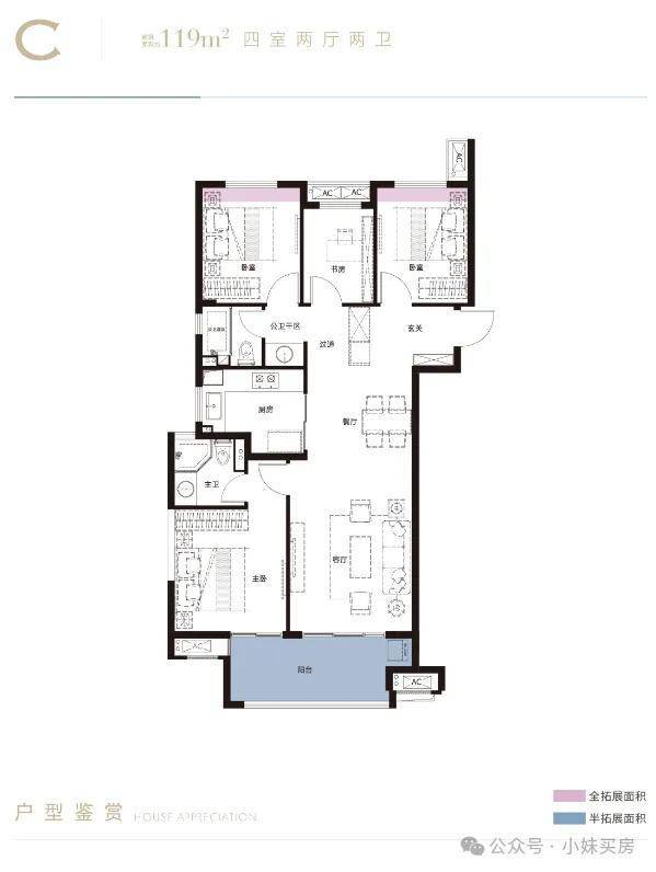 建面约119平四房