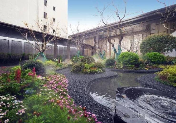 步移景异,曲径通幽,水景与绿植围合出胜致雅境,营造出“庭院幽深、廊道回转”的意境。