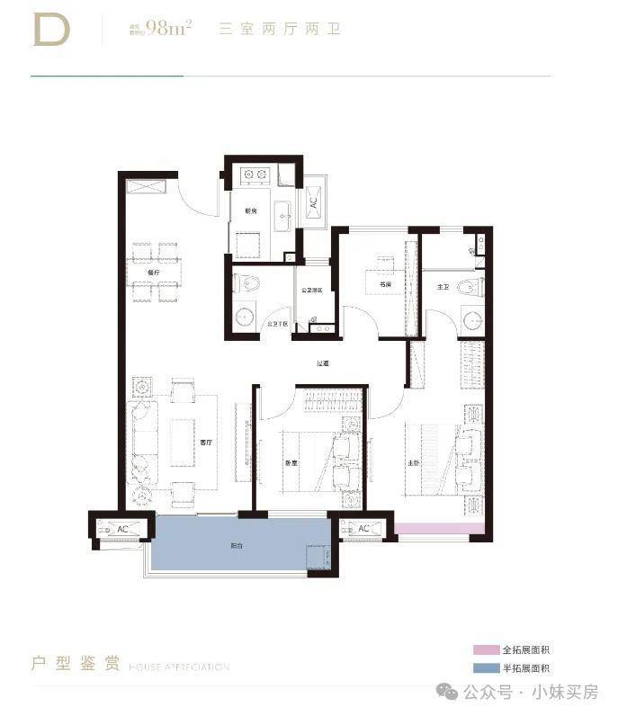 建面约98平三房