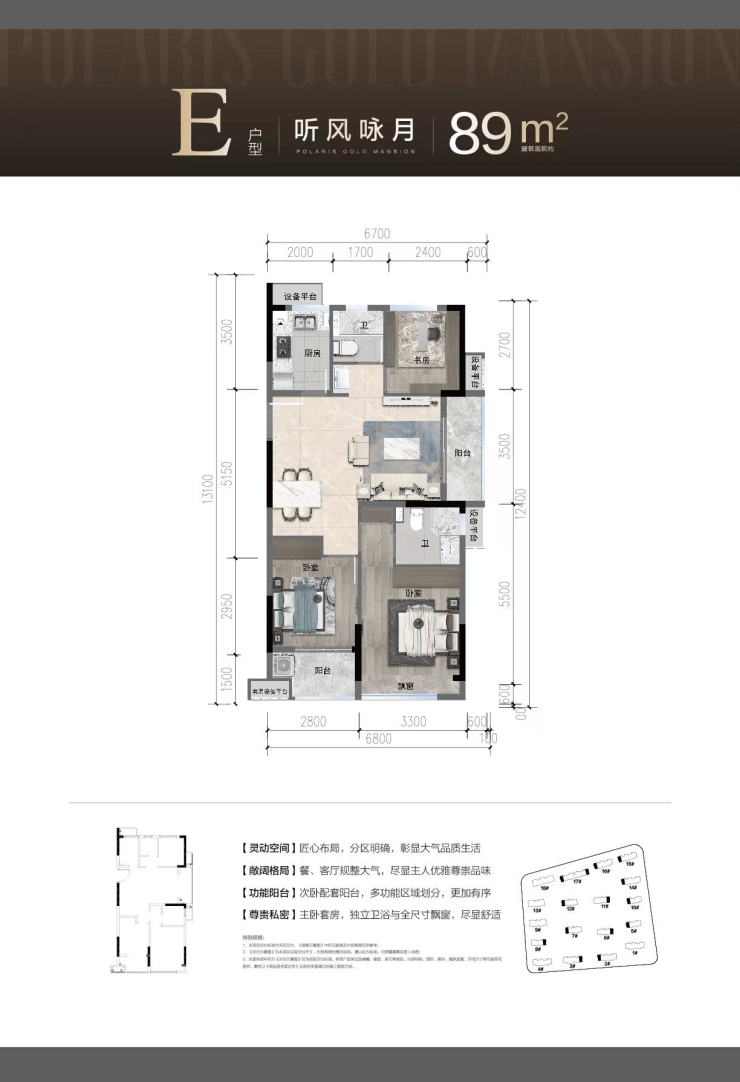 【产品户型】:72平2/2/1,78-81平3/2/1,89平3/2/2,103平4/2/2