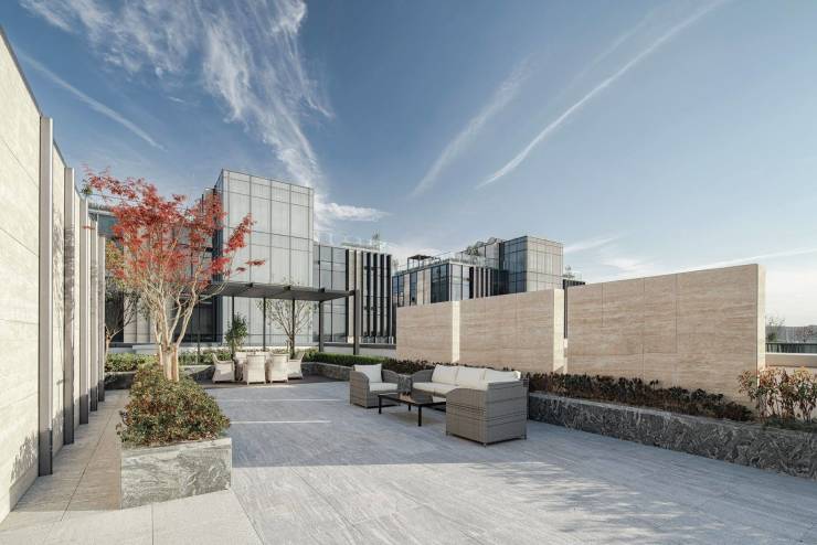 建筑设计:建筑立面采用干挂石材 + 玻璃幕墙,外观现代大气。独栋商墅配备独立冠名权,且通燃气,采用能源三联供中央空调系统。