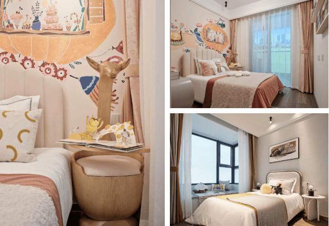 127㎡四房:四房两厅两卫,空间灵活多变,可改造为儿童房、收纳室、工作室等;餐厅、客厅、厨房、阳台连成约45㎡集中活动空间,双卫配置提升生活便利性。