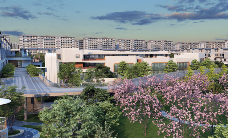建筑规划:项目由两宗地块组成,产品以洋房和合院为主,是杭州少见的大体量低密楼盘。社区内设有空中廊桥,巧妙串联起商业、学校等区域,围合成中央大草坪与多元活动场地,进一步提升了社区空间的连通性与实用性。